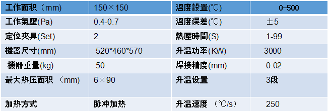 ●鉬合金壓頭確保溫度平均,升溫快速及使用壽命特長